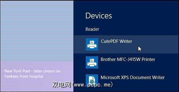 安装后,PDF选项将出现在已安装打印机的列表中-在现代应用程序和台式机应用程序中。