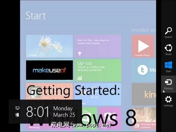 点击或在出现超级按钮栏后单击设备图标。 (您还可以通过按Windows键+ K来从任何地方快速访问“设备"超级按钮。)