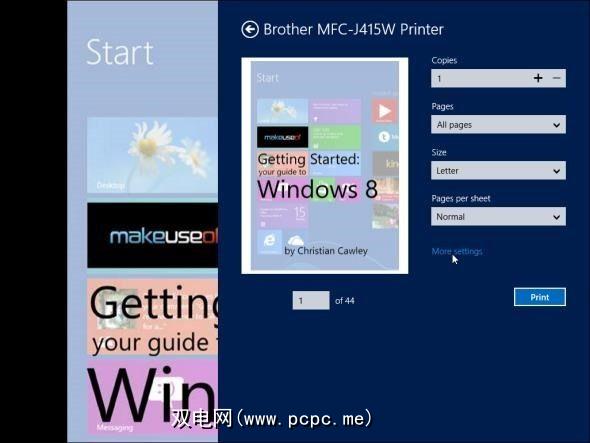 点击要打印到的打印机,您会看到一些基本信息。打印设置。打印机驱动程序可以自定义此处显示的选项,因此您会看到不同的选项,具体取决于打印机。点击或单击打印以打印文档。