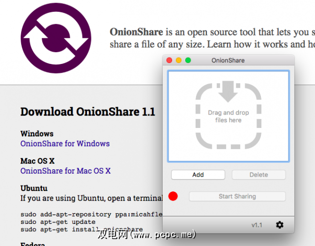 下载:适用于Windows的OnionShare(免费),macOS(免费) ),Linux(免费,请阅读说明)