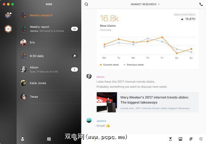 5。 Wire(网络,Windows,Mac,Linux,Android,iOS):最佳私人通讯程序?