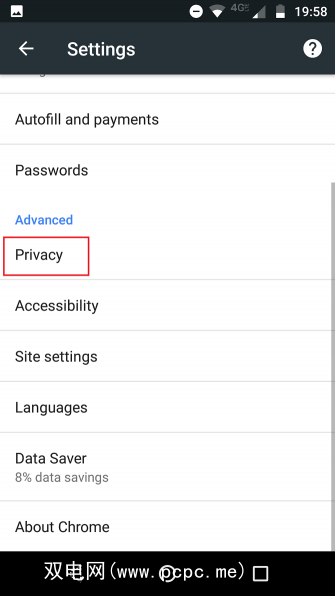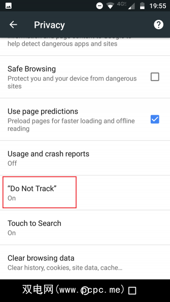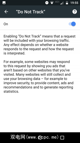 要开启不要在Android上的Chrome上跟踪,请执行以下步骤: