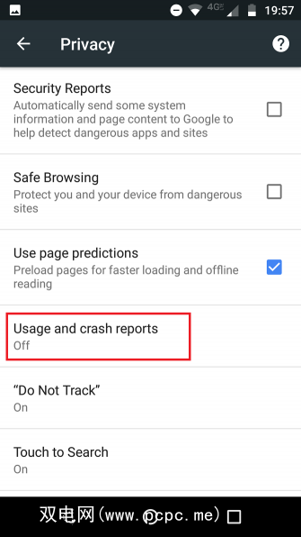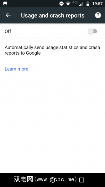 最好的解决方案是将其关闭。为此,请转到更多>设置>高级>隐私>使用情况和当机报告,然后将切换开关滑动到关闭位置。