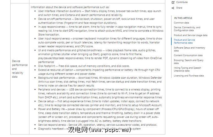 除了更具争议性的数据收集类别之外,Microsoft还提供了一些争议较小的类别的信息。