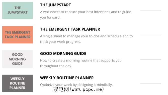 您一定要查看“免费资源"页面,该页面要求您注册电子邮件通讯。这里有12种用于不同策略的工具,包括工作表,任务计划者,路线图指南,人才库模板等。还有一个为期5天的免费电子邮件课程,可以帮助您了解生产力杀手的基本知识。