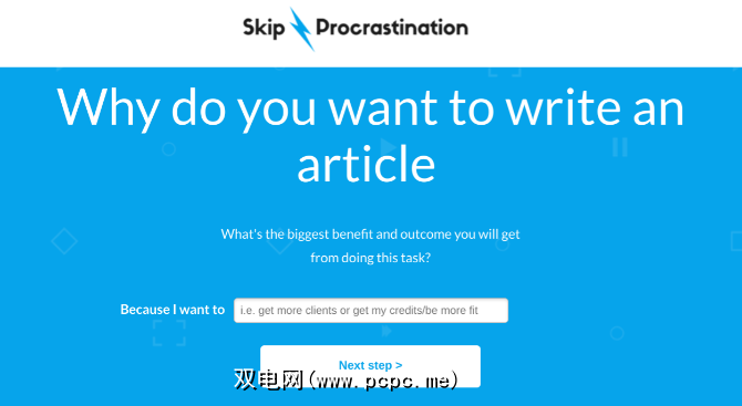 “跳过拖延"是一个Web应用程序,当您当前在拖延某个任务但想继续前进时可以使用。根据有关该主题的科学发现,该应用程序将带您执行一系列步骤,最终结果是使您行动。