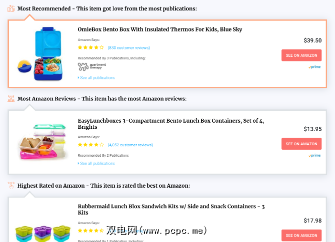 “最佳最佳列表"从亚马逊上的真实评论中过滤掉虚假评论,然后将其与The Wirecutter或The Spruce等值得信赖的网站的评论进行匹配。两者结合起来,就能够为日常使用提供建议,像抹刀一样无聊。