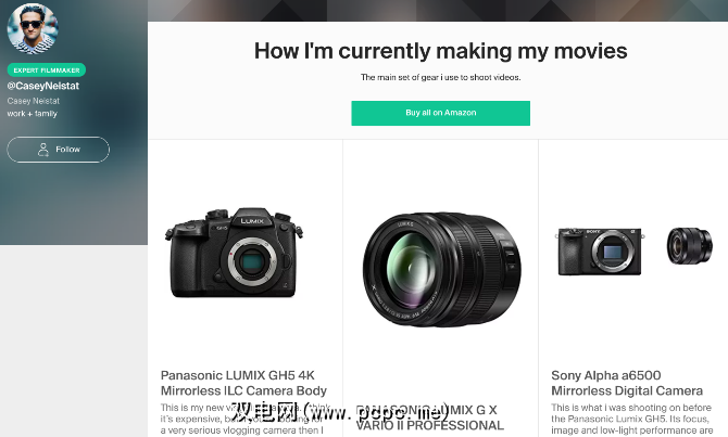 我怎么知道这一切?因为MKBHD在Kit上共享了他的设置,所以任何人都可以在该网站上创建自己喜欢的产品的集合。您可以找到Casey Neistat的拍摄电影的工具,Garden Answer的Laura的园艺工具或几乎所有其他工具。使用Kit,创建者还可以添加Amazon链接并通过会员购买来赚钱,因此,您实际上是在支持自己喜欢的创建者。