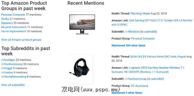 例如,r / buildapc毫不费力。通过产品提及,您可以看到所有共享在该subreddit上的链接。您可以按乐器,书籍,家居装饰等不同产品组过滤链接。