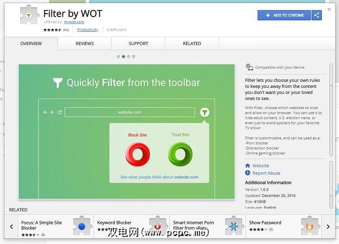 按WOT进行过滤自然是由相同的开发人员进行的,但可以阻止您不想看到的内容。那可能是整个站点,包括Buzzfeed之类的分散注意力的站点;关键字,因此您不必再担心《权力的游戏》剧透;或子域(例如,如果现在无法处理的话,则是政治部分)。