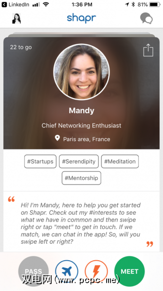 使用该应用程序的算法享受与其他专业人员的链接。它考虑了您标记的兴趣,位置和与工作相关的背景。然后,Shapr建议每天查看10到15个个人资料。这个有限的数目为您提供了足够的选择而又不牺牲您的生产力。