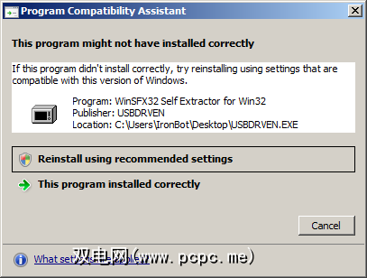 这是运行Windows Vista或XP的用户的程序兼容性助手的外观: