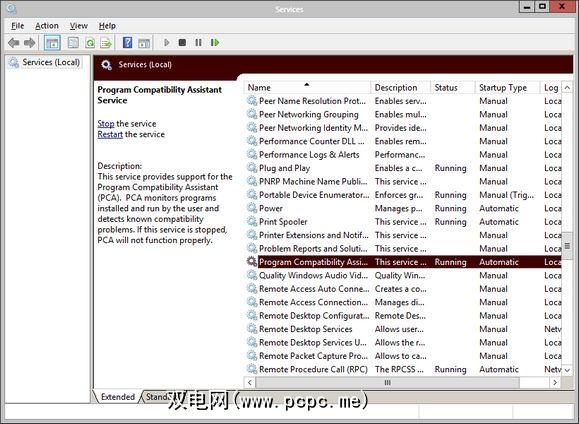 为此,请在计算机中键入 services.msc 运行提示或“开始"菜单上的“ Windows搜索"字段。从那里找到 Program Compatibility Assistant 。