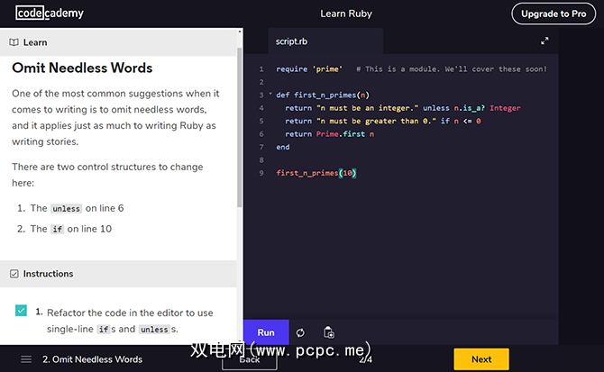 通过语言学习,Codeacademy提供了付费的 Pro 和 Pro Intensive 旨在涵盖整个主题的课程。机器学习,测试驱动开发和前端Web开发方面的专家课程只是其中的一部分。