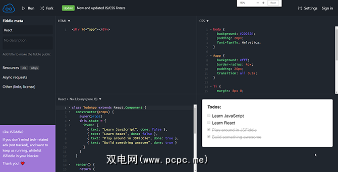 6。最佳的JavaScript在线IDE:JSFiddle