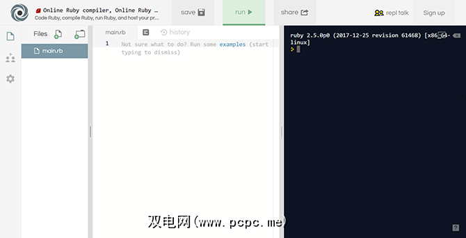 8。 Ruby和Ruby on Rails的最佳在线IDE:Repl.it