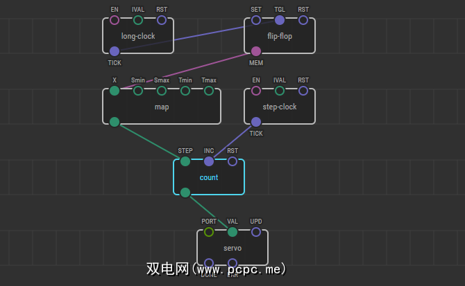 XOD是Arduino开发板的一种基于节点的开源可视编程器。每个块代表设备和传感器,您可以通过从每个节点拖动线来在它们之间建立链接。