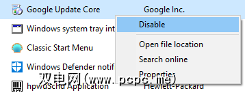 要在启动时禁止加载程序,请从右键单击列表,然后点击禁用。您可以随时单击另一个右键并单击启用来撤消此操作。