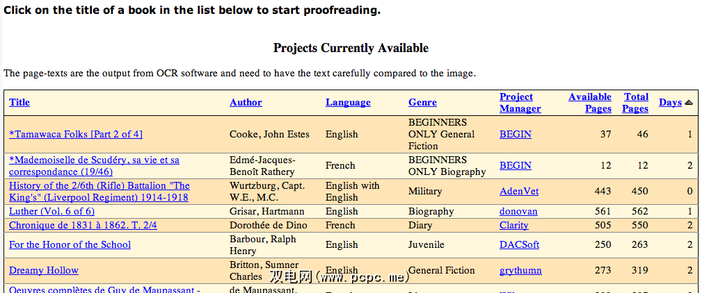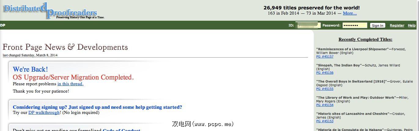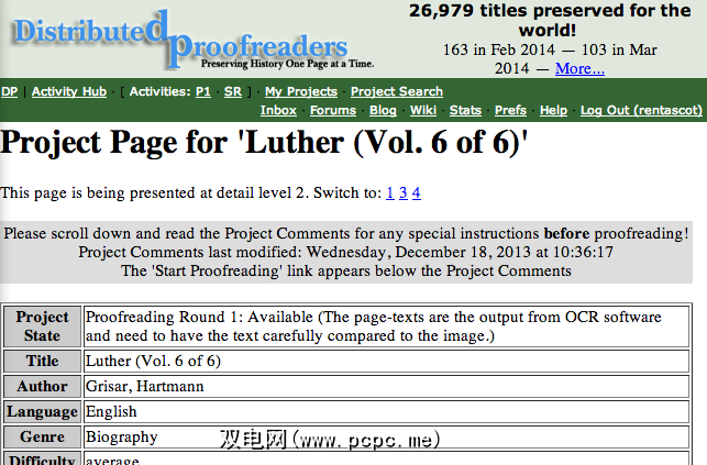 这是进行所有校对的页面。首先,单击右上角的“注册"链接,然后填写表格。单击激活电子邮件中发送给您的链接,就是这样。恭喜你您已经正式加入了Distributed Proofreaders。