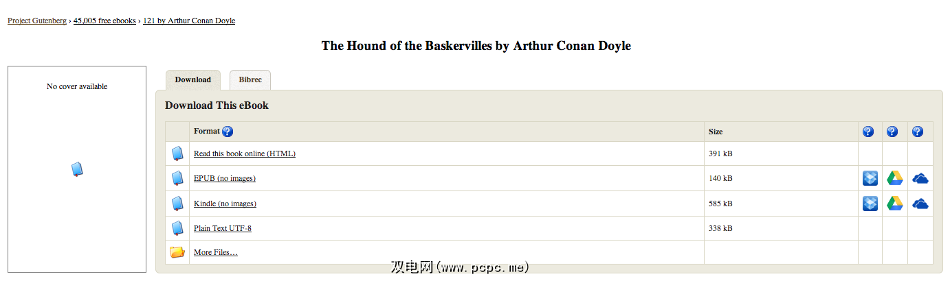 您已经查看了搜索结果,并决定要下载文本版本的《巴斯克维尔猎犬》。让我们看一下如何下载它以便阅读。