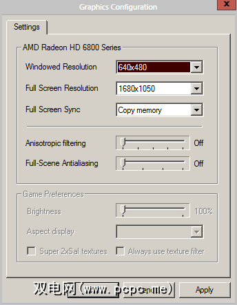 图形配置听起来很像。在此屏幕上,您可以设置窗口分辨率,全屏分辨率以及同步和过滤选项。在网上,PCPC.me无法帮助您找到它们。为您不拥有的游戏下载ROM属于盗版,并且这样做是您的决定。