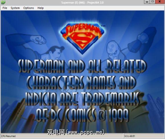 如上所示,您可以看到我可以说已经加载了Nintendo 64已知的最差的游戏之一-超人!