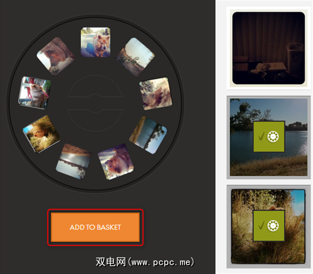 然后将链接的图片从右列直接拖放到您的“滚轮"上。完成后,点击转轮底部的“添加到购物篮"按钮。