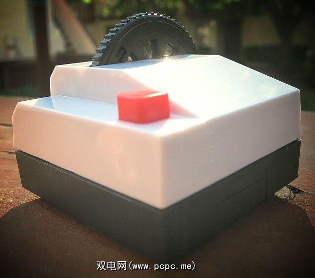 Projecteo投影仪的设计看起来类似于老式的幻灯片投影仪,您可能在小学时就已经看到过这种类型。有三个可移动部分:一个轮子,其中包含滑片;投影仪和镜头;和一个按钮,用于激活LED投射灯。这三个组件位于黑色塑料底部顶部的白色塑料盒中。就塑料的坚固性和手感而言,该结构感觉类似于乐高。