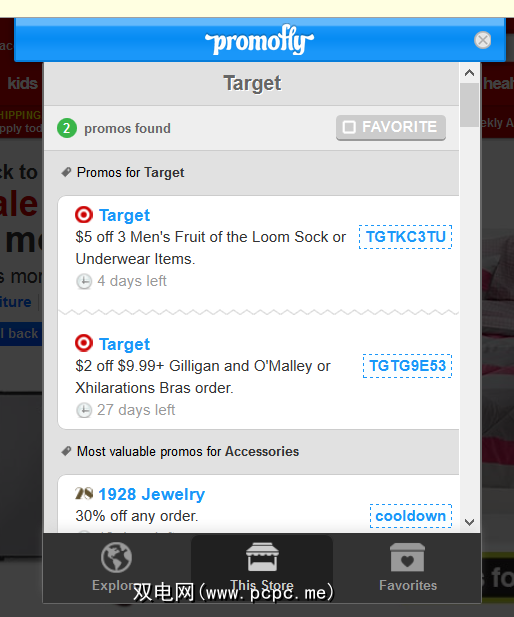 “我的收藏夹"选项卡更多是您无法控制的推荐选项卡,“收藏夹"选项卡更加有用,您可以将商店添加到“我的收藏"列表中,以便轻松检查其中是否有可用的代码。