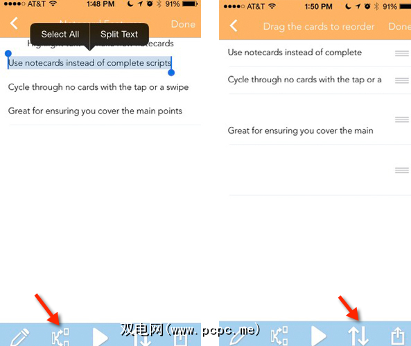 PromptSmart还包括方便的便签卡功能,该功能不使用语音识别功能。您可以在PromptSmart编辑器中一次创建一个记事卡,也可以导入文档。如果选择后者,则PromptSmart会包含一项功能,使您可以轻松地将其突出显示并拆分为数字卡,然后再将其按所需顺序排序。