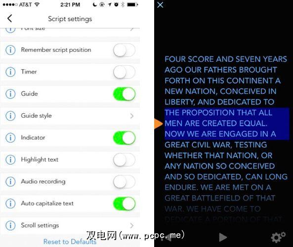 您还可以从语音更改滚动控件识别为手动滚动,也可以预先设置不使用语音识别的自动滚动速度。如果需要,PromptSmart也可以大写脚本文本,以帮助您更好地查看和阅读。