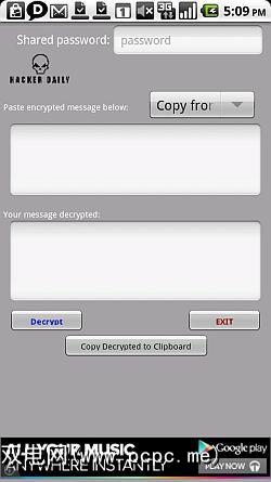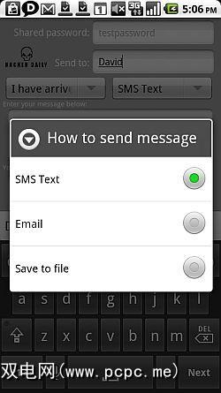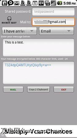 另一个大问题不是只是您存储在智能手机上的信息,而是以短信和电子邮件的形式流入和流出的信息。一个可以帮助您保护这些传输的简单应用程序是Hacker Daily的“加密消息[不再可用]"。