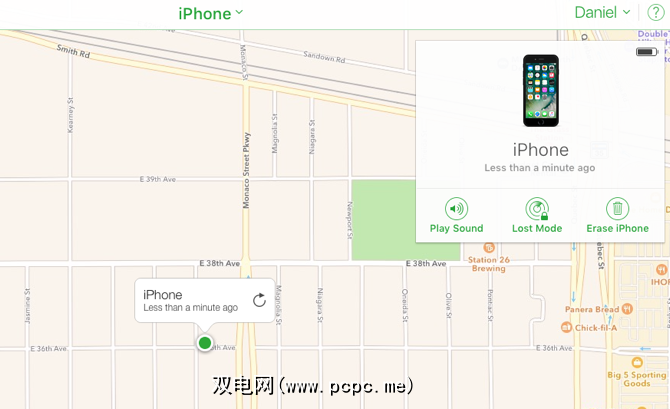 如果您丢失了设备,只需登录iCloud.com并使用查找我的iPhone 应用程序即可。它会告诉您设备在地图上的位置。单击显示屏上的 i 按钮,“查找我的iPhone"将为您提供播放声音的选项,以帮助您查找丢失的设备,启用“丢失模式"并锁定屏幕或擦除设备。