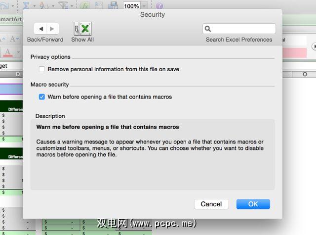 为确保Office向您发出此警告,并让您有机会在运行宏之前禁用宏,请转到信任中心>信任中心设置>宏设置,然后选择禁用所有带通知的宏(在Mac上,此设置位于首选项>安全性强>)。如果您的组织已选择其他选项作为默认选项,则可能需要获得IT部门的帮助。