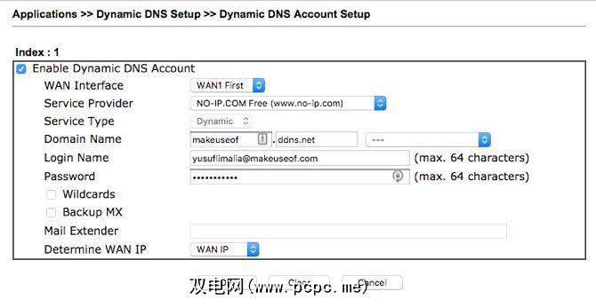 现在登录到路由器,然后查找动态DNS设置。路由器与路由器之间会有所不同,但是如果您在高级设置下找不到它,请参阅制造商的用户手册。通常需要输入的四个设置为: