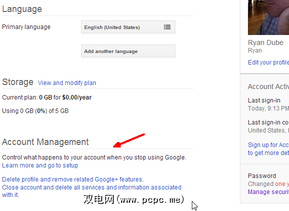 Google已通过“ Google非活动帐户管理器< / em>"服务。您可以在Google帐户设置页面底部的“帐户管理" 部分下找到该服务。