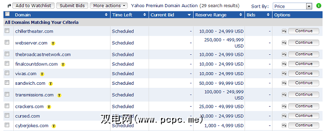 Yahoo放弃了多年来积累的一些高级域名,在11月14日至11月22日之间进行的在线拍卖称为Domainapalooza。在Sedo出售的全部300多个域中,价格从1,000美元到150万美元不等。因此,如果您有银行存款,并且天生渴望拥有 Sandwich.com , Cursed.com 或 Religious.net ,
