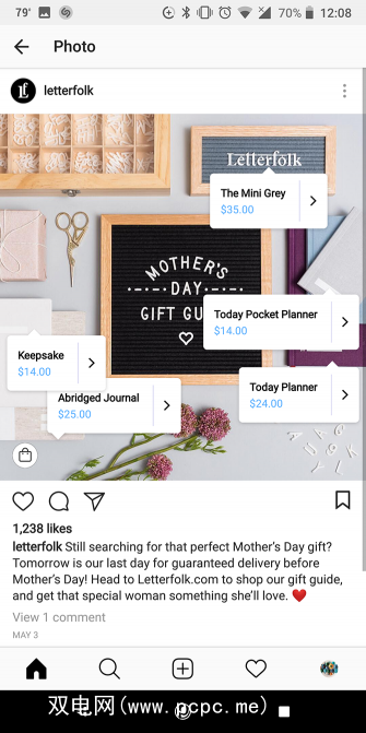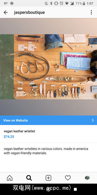 在浏览您的Feed或访问某人的个人资料时,您可以判断该商品是否可以通过Instagram出售。
