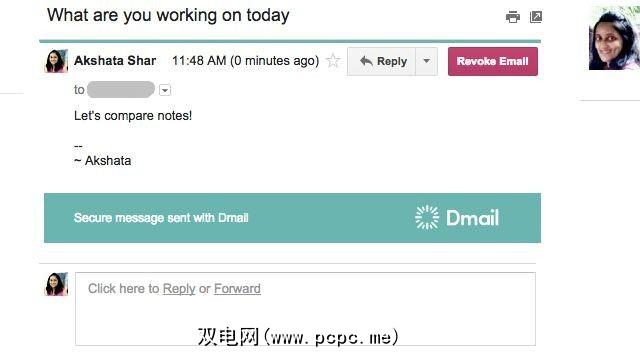 如果电子邮件收件人安装了Dmail,则他会定期查看您的电子邮件Gmail邮件。如果他没有安装Dmail或使用非Gmail的电子邮件服务,那么他会收到一条指向您邮件的链接。