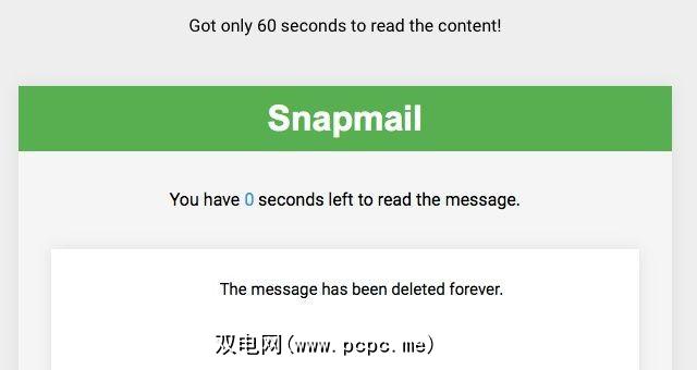 撰写电子邮件后,请点击 Snapmail ,而不是发送。收件人单击收件箱中的Snapmail链接后,他将有60秒的时间阅读电子邮件。