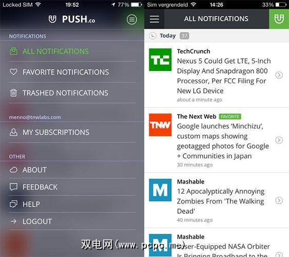 与Boxcar 2和Pushover不同,Push.co专注于内容。 Push.co并没有收到有关天气的通知,也没有收到提及您的新Facebook帖子,而是关注最新消息。如果您正在寻找RSS的快速替代品,或者您绝对必须知道第二个新故事打破了(特别是在高科技领域,它具有出色的覆盖率),那么这是理想的选择。
