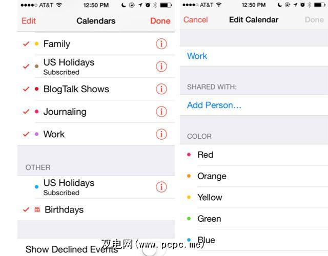 要在在iPhone中,选择或创建要共享的日历。点击日历旁边的“ i"按钮,然后添加要与之共享日历的人的电子邮件地址。对您要添加的每个人重复此过程。邀请会发送给您的被邀请者,然后他们可以接受邀请。