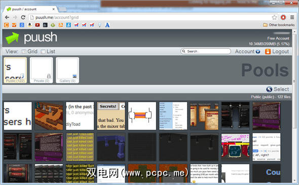 在Puush网站上,您可以登录帐户并管理所有已保存的图像已上传。这些图像默认为公共相册。