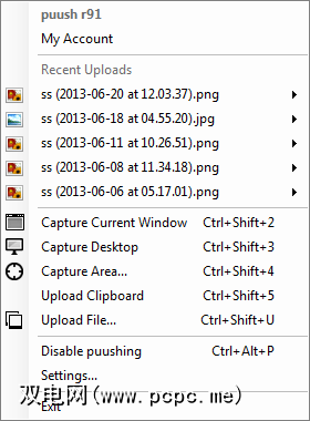 对于设计如此简单的工具,Puush设法提供了足够的功能,感觉像是一个完整的程序。以下是您可以使用Puush采取的不同操作:
