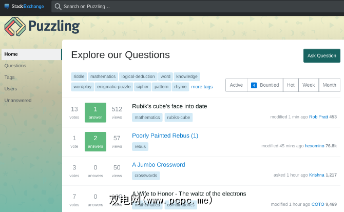 问题-答案平台Stack Exchange托管了一个名为 Puzzling 的专用论坛。益智游戏提出问题,回答难题,甚至试图为未解之谜提供解决方案。对于任何对拼图感兴趣的人来说,这都是一个了不起的社区。 p>