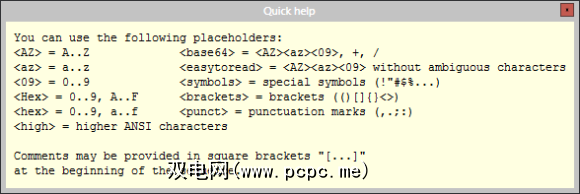 使用密码,您可以设置长度并确定可以使用的字符集。例如,这将允许您创建仅一个大小写(上部或下部)的密码,或者创建不带数字的密码。在该字段的右侧,您可以看到两个图标,从左到右,您可以从中查看当前字符集的详细信息或访问一个小的帮助菜单。