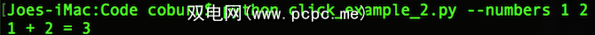 @click.option('--numbers', nargs=2, type=int, help='Add two numbers together.')此处唯一的新代码是 nargs = 2 ,并且 type = int 选项。这表明Click接受数字选项的两个值,并且它们都必须均为整数类型。您可以将其更改为任何所需的数字或(有效)数据类型。
