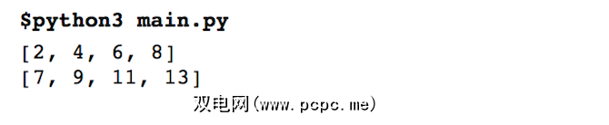 list1 = [2, 4, 6, 8]print(list1)def add_five(number): return number + 5 new_list = list(map(add_five, list1))print(new_list)