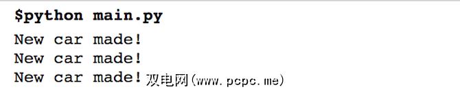 class Vehicle: """ This class defines vehicles. """ def __init__(self, color='plain'): """ Setup some custom car properties """ print('New car made!') self.color = colorred_car = Vehicle()green_car = Vehicle()blue_car = Vehicle()请特别注意此 __ init __ 方法。它必须以两个下划线开头和结尾。这是Python中的一种特殊方法。创建新对象时会自动调用它。运行此代码将多次显示“ New car made!"字样。