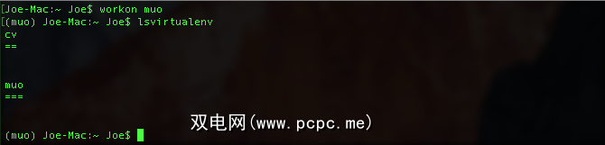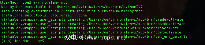 这将在〜/ Envs 文件夹内创建一个名为 muo 的文件夹和环境。